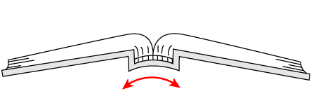 表紙の背に中身が密着しているため丈夫で本の開閉によって背の形が崩れることがありません。